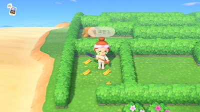 왼쪽에 덤불을 삽으로 파버리고 들어가면 벨교환권 4장을 얻을 수 있습니다. 금색의 티켓이 왠지 설렙니다. 이걸 얻기 위해 그 먼길을 돌아왔습니다. 미로에서 얻을 수 있는 모동숲 벨교환권은 총 9장이기에 나머지 벨교환권을 얻기 위해 왼쪽 하단으로 가야 합니다. 하지만 리뷰 소녀는 더 이상 이 미로에 들어가기 싫어지는데.. 여기서 꿀팁!