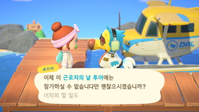안녕하십니까. 리뷰 소녀입니다.✿'◡'✿ 얼마 전 닌텐도 스위치 모여봐요 동물의 숲에서 근로자의 날(2020년 5월 1일)을 맞아 근로자의날 마일리지 여행 티켓을 선물한다고 했습니다. 들어가 보니 역시 여울이가 친절하게 방송을 때립니다.